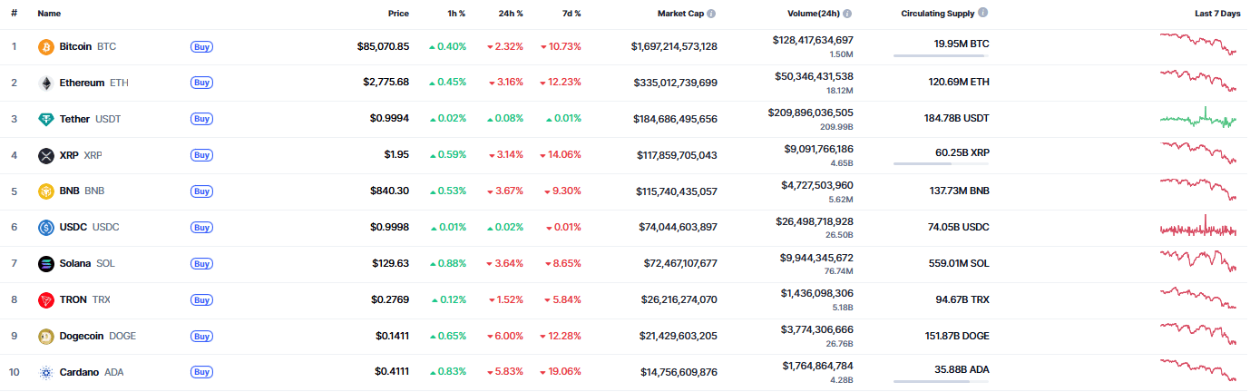 The withdrawal of investors from "risky" assets was also seen in cryptocurrencies, which failed to halt their declines overnight. The price of Bitcoin (BTC) is down 8.8% over the last 24 hours, while Ethereum's ETH is down 10.3%. The largest cryptocurrency is approaching the psychological threshold of $80,000, after having surpassed $90,000 just 3 days ago.