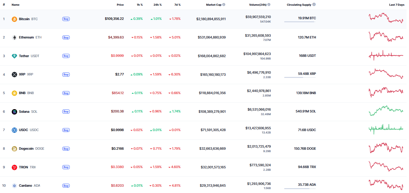 Extract from CoinMarketCap.com on September 1st 2025